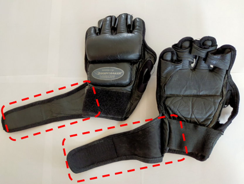 グローブ仕様としては、写真中の赤枠のように、手首に巻き付けて固定できるタイプを推奨します。